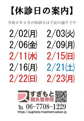 現在facebookの更新が出来ず、休診日の【お知らせ】が遅くなりご迷惑をおかけしております。